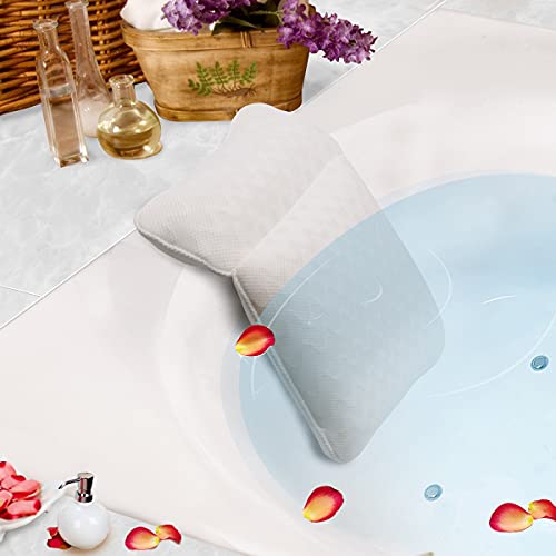 PINGKO Bath Pillow with Head, Neck, Shoulder and Back Support - Non-Slip, Extra Thick & Soft, Machine Washable,3D Air Mesh Technology,Pad with 6 Suction Cups Spa Bathtub Pillow